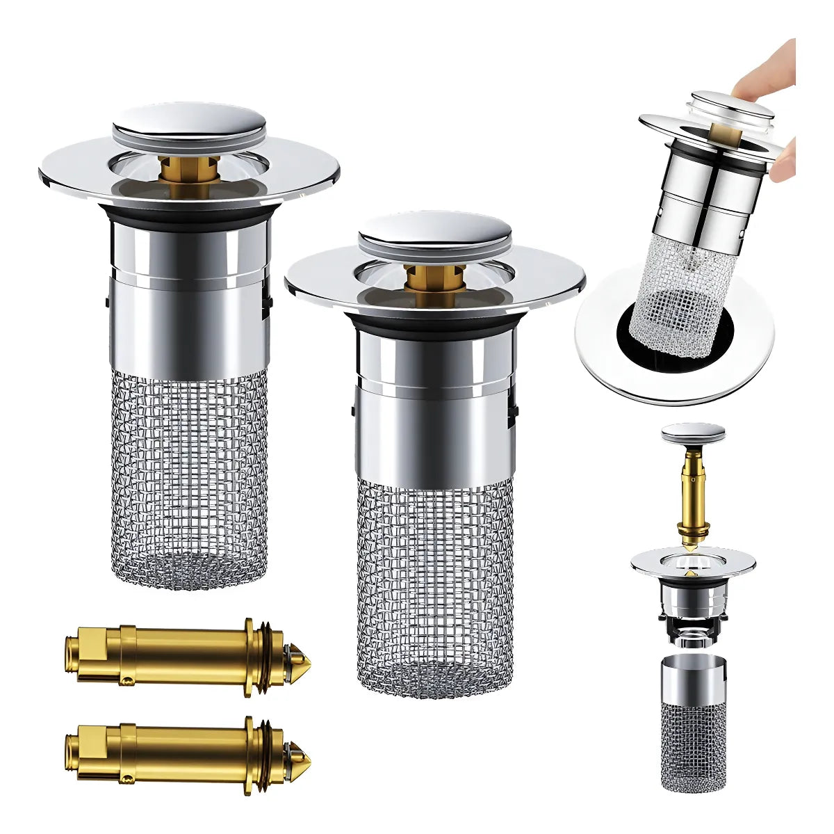 Instalar un tapรณn universal para filtro de lavabo es muy sencillo. Simplemente reemplace el tapรณn viejo por el nuevo. Para limpiarlo, retรญrelo fรกcilmente y enjuรกguelo con agua corriente. Use un cepillo suave o un paรฑo para eliminar cualquier residuo incrustado